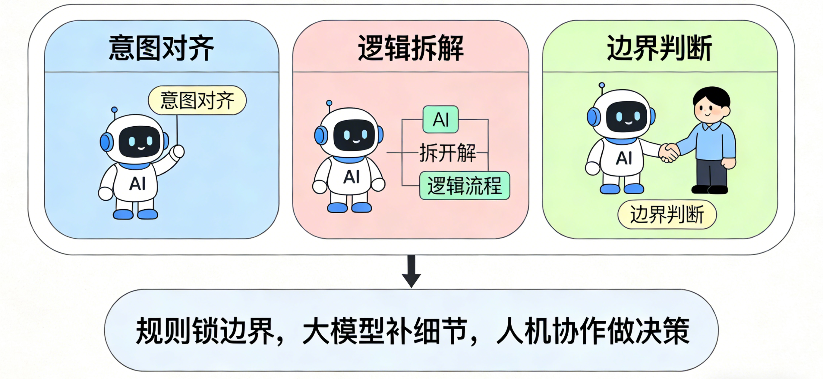 AI稳妥落地范式:规则锁边界,大模型补细节,人机协作做决策